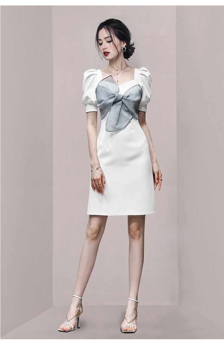 SMTHMA シックなスタイルのサマードレス女性のビッグボウメッシュ半袖フレンチスクエアネックスウィートドレス Vestidos リボン 大人ガーリー キュート カジュアル 夏物 スクウェア | two