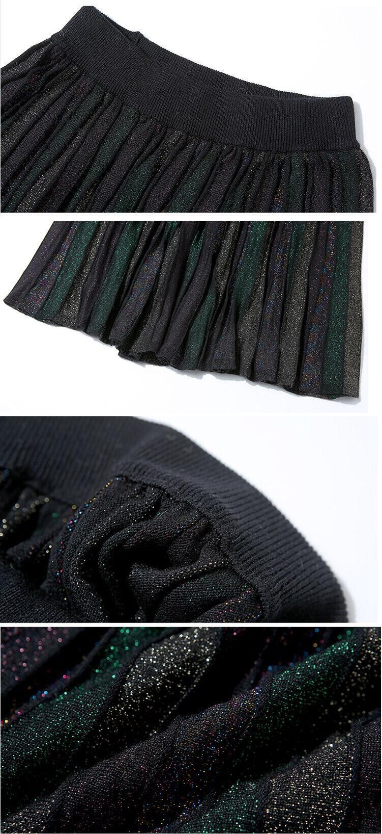 SMTHMA 春 2 個スカートセット女性のセクシーなメッシュブライトセーター + 弾性ウエストプリーツスカートスーツ エラスティック 伸縮 スプリング 春物 シルク