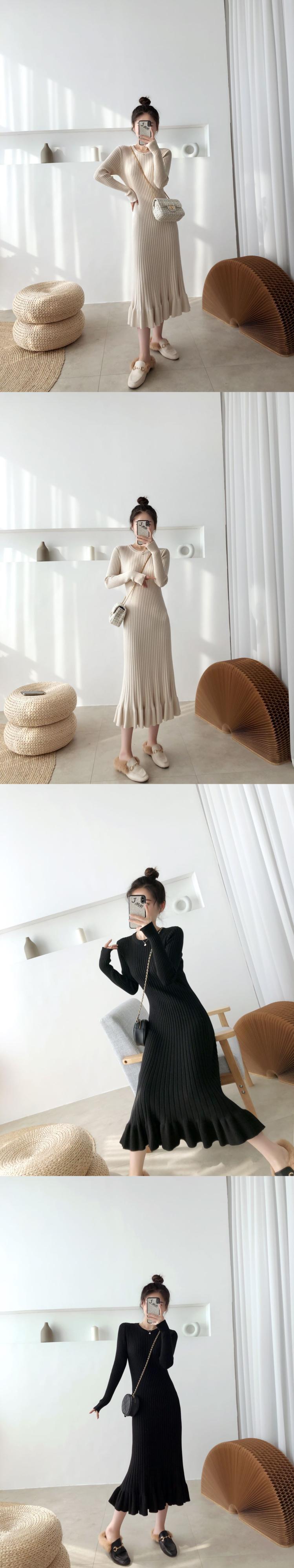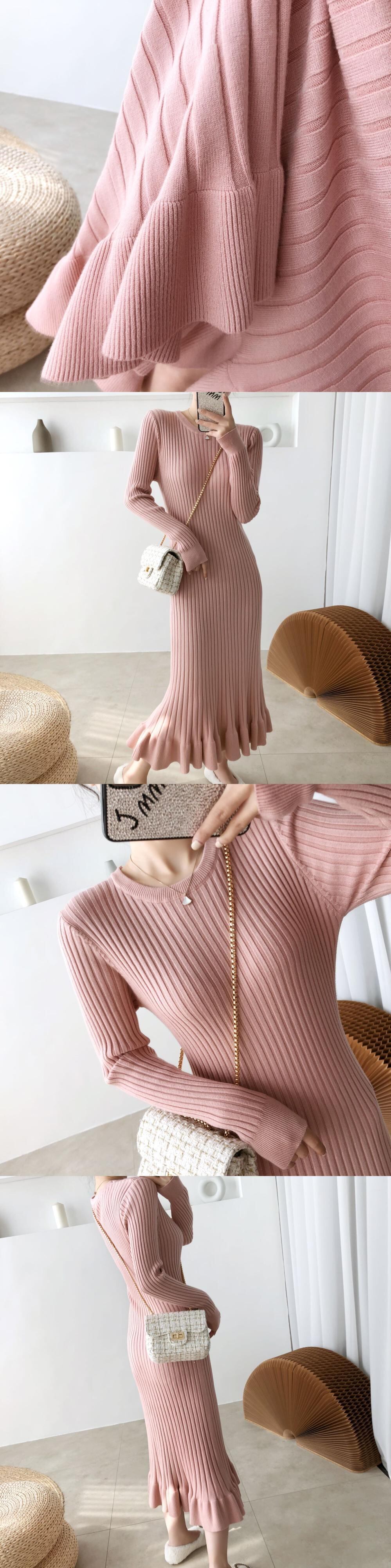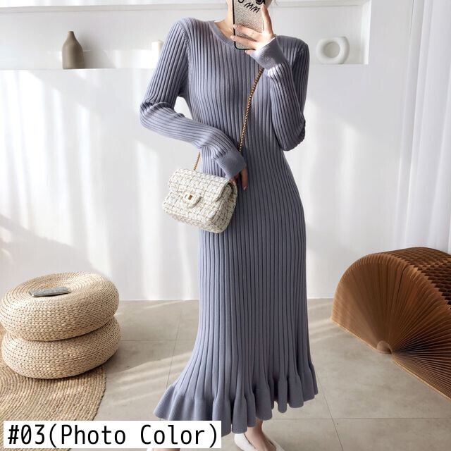 SMTHMA 秋冬長袖女性セータードレススリムウエストストレッチニットミディマーメイドドレス Vestidos ロング オータム 秋物 ウィンター 冬物