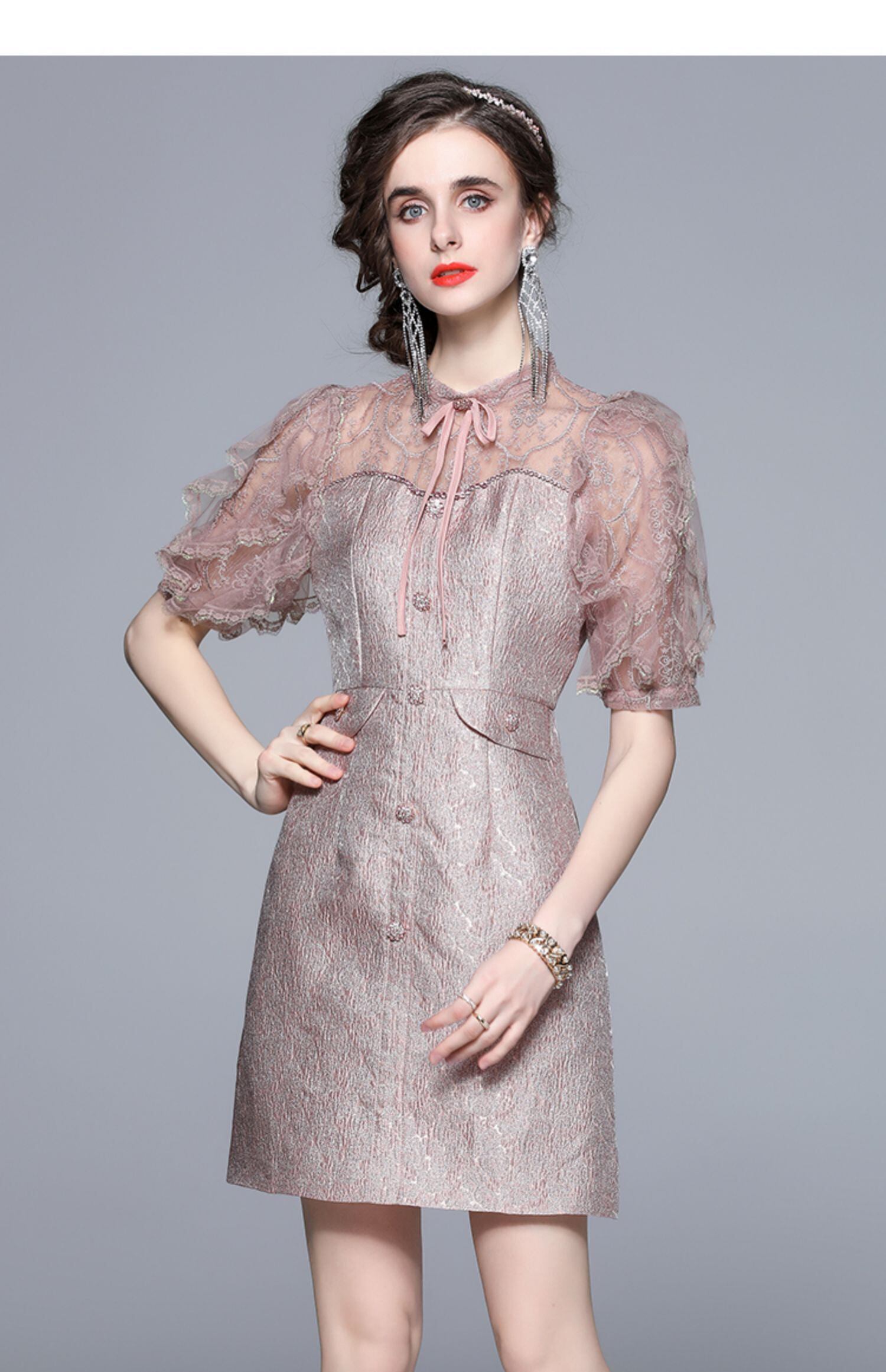 SMTHMA 滑走路パーティードレス女性フリルメッシュ刺繍スリムサマードレス Vestidos 夏物