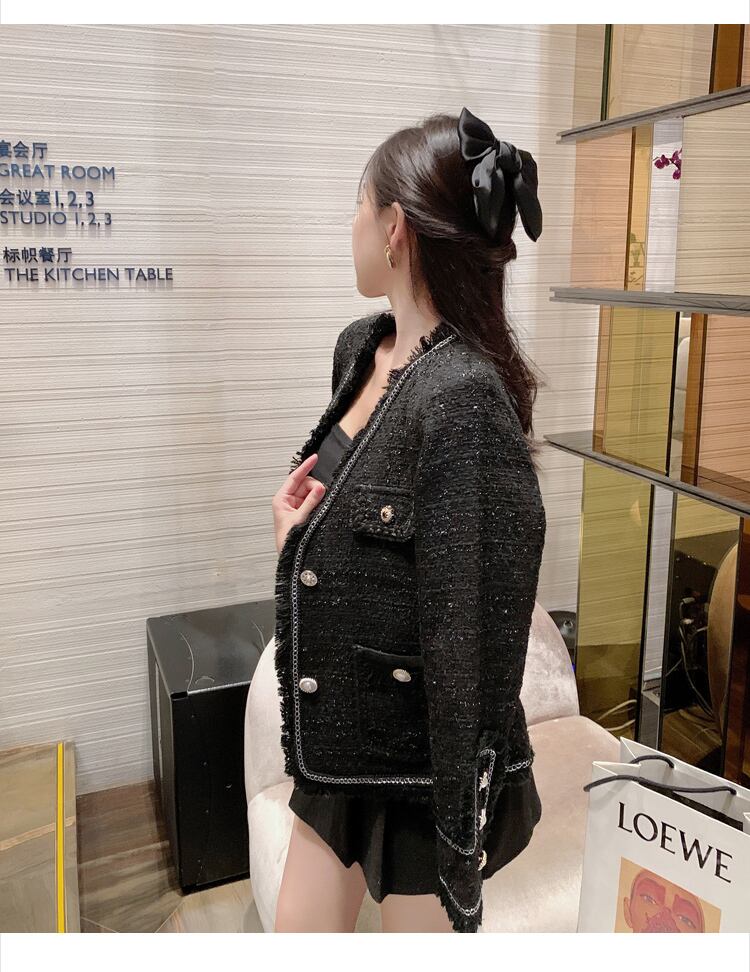 SMTHMA t Oネック女性ツイードジャケット秋冬シングルブレストコートジャケット生き抜くトップス オータム 秋物 ウィンター 冬物