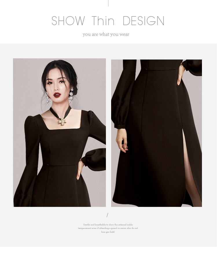SMTHMA 秋と冬のスタイルの黒のドレス ローブ スクエア カラーのセクシーなスプリット ドレス Vestidos ブラック オータム 秋物 ウィンター 冬物 スクウェア