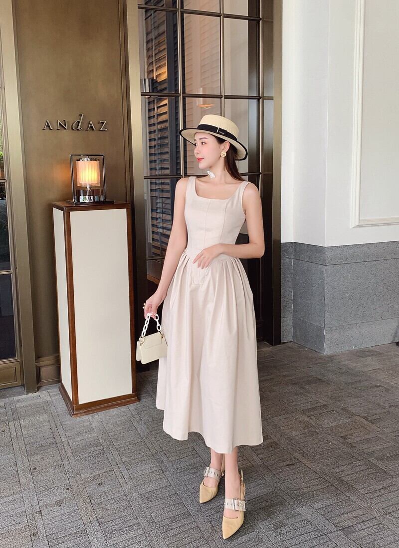 SMTHMA セクシーなストラップ夏のパーティードレスの女性のシックなミディソリッドプリーツドレス Vestidos サマー 夏物 ソリッドカラー