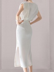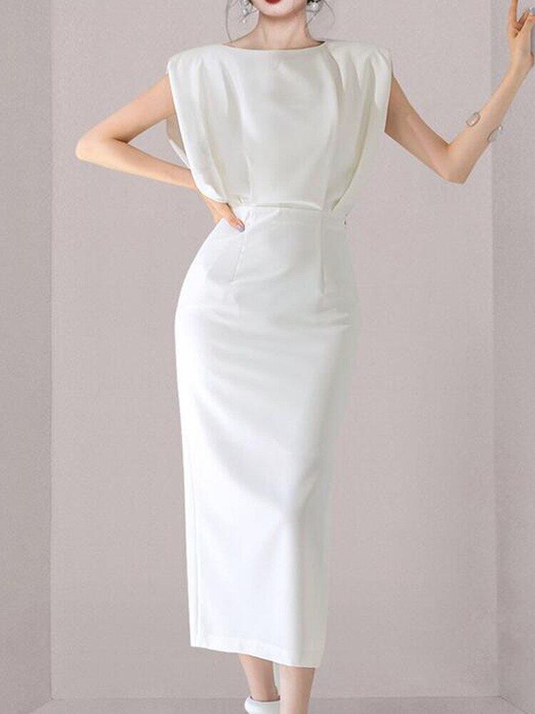 SMTHMA 夏の女性のサテンストラップミディノースリーブスプリットドレスシャーリングバックレスボディコンセクシーなパーティークラブスリム服 サマー 夏物