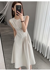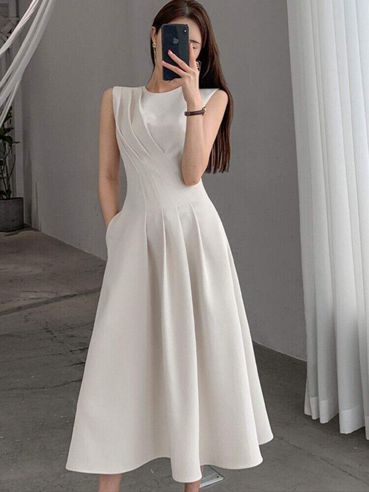 SMTHMA 女性ノースリーブソリッドミディドレスオフィスサマードレス服 Vestdios 夏物 ソリッドカラー 会社 学校 通勤や通学にも