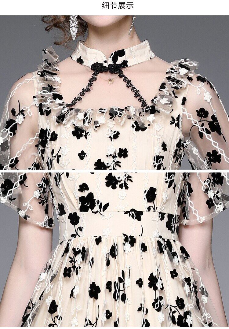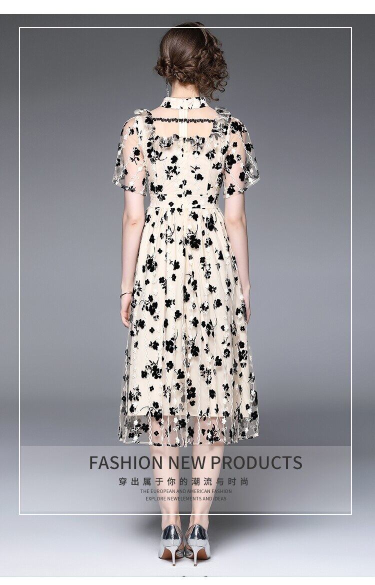 SMTHMA 女性の夏フロッキング刺繍ドレス半袖気質パーティードレス Vestidos ショート ハーフスリーブ サマー 夏物