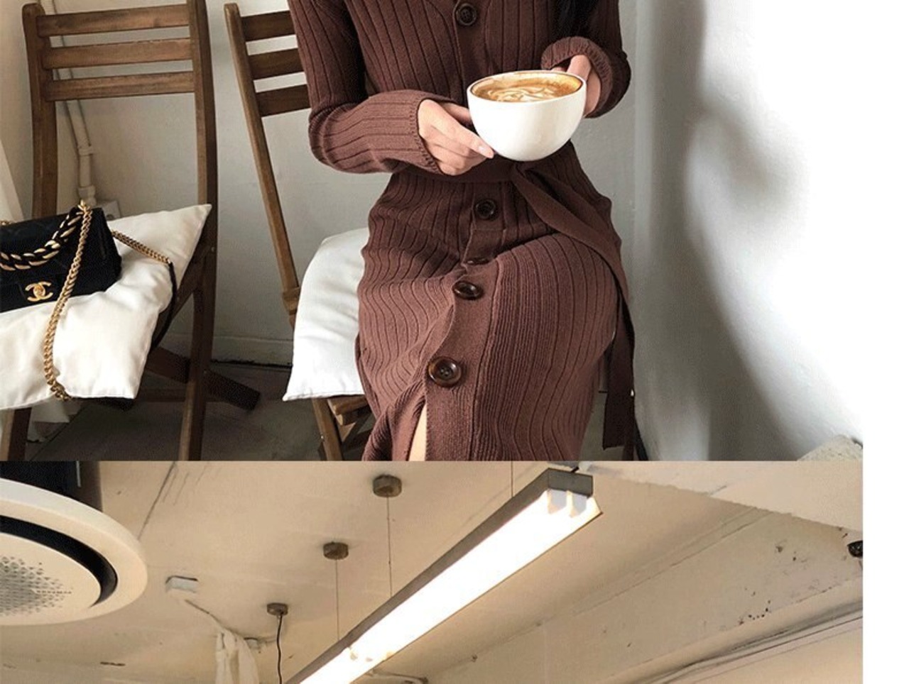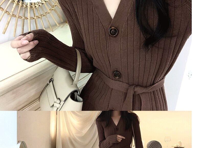 SMTHMA 秋冬 スリム ウエスト ニット ドレス ベルト付き 長袖 セータードレス ロング オータム 秋物 ウィンター 冬物 ハーネス