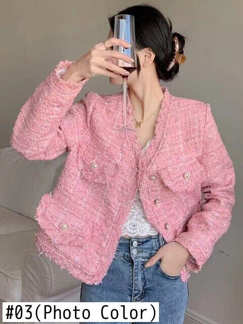 SMTHMA ボタン シングル ブレスト ショート ジャケット コート女性ツイード チェック柄の上着服