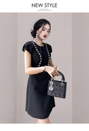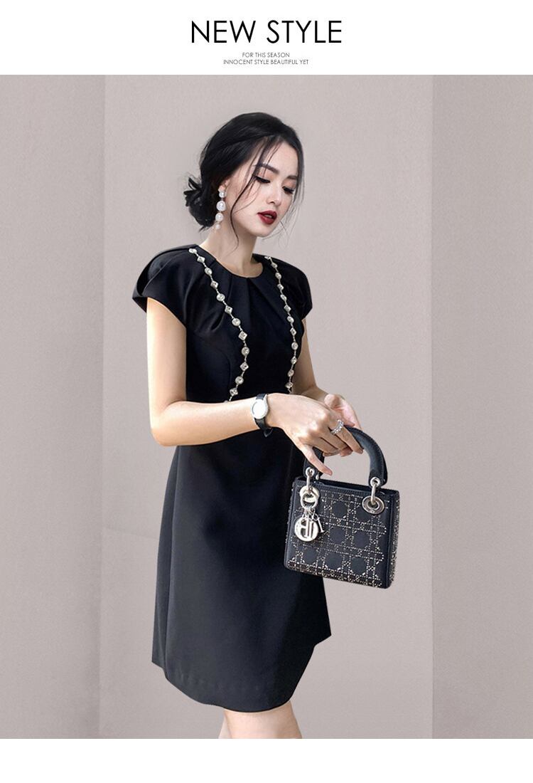 SMTHMA ランウェイ ブラック パッチワーク ダイヤモンド レディース ドレス Oネック ノースリーブ ギャザー ウエスト ミニドレス レッド