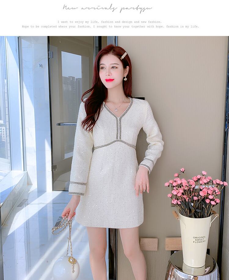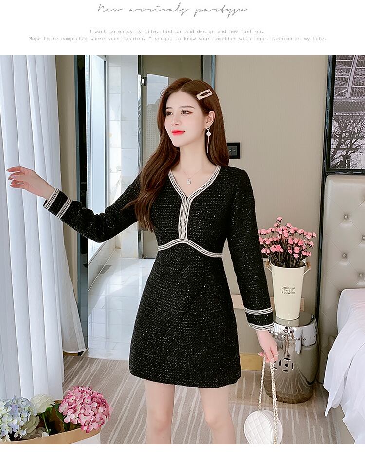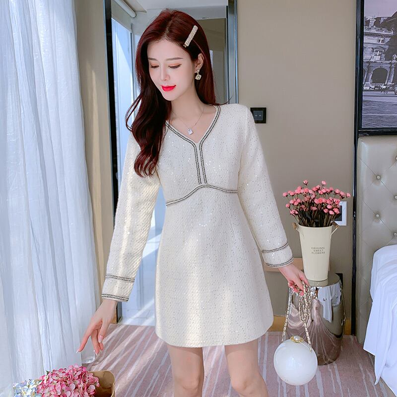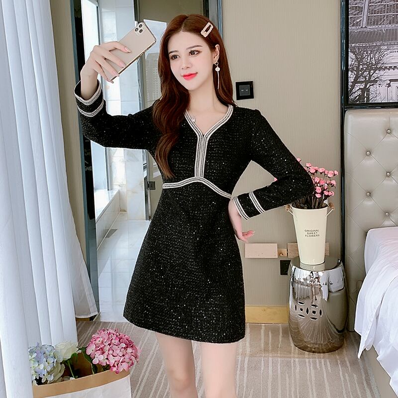 SMTHMA 秋と冬の滑走路の女性の甘いスパンコール ドレス-エンド気質ツイード ウール クリスマス ドレス 大人ガーリー スウィート キュート カジュアル オータム 秋物 ウィンター 冬物 | two