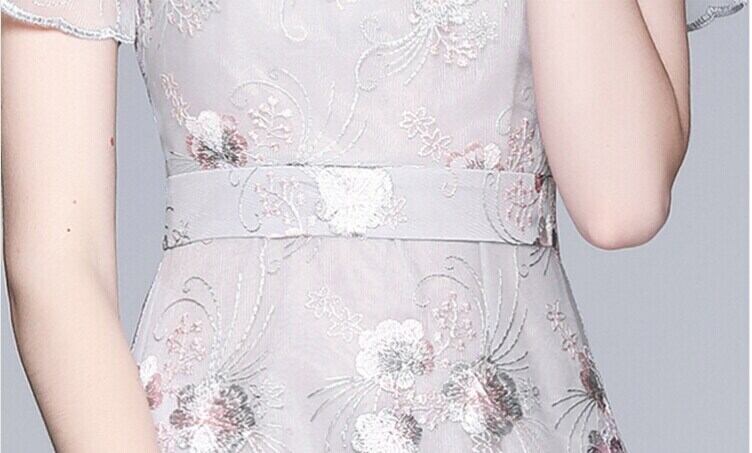 SMTHMA メッシュ刺繍サマードレス女性半袖ウエストミッドレングスドレス服 ショート ハーフスリーブ 夏物