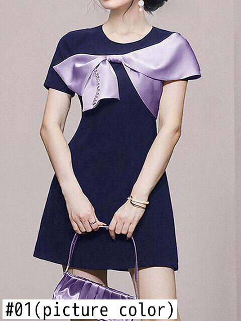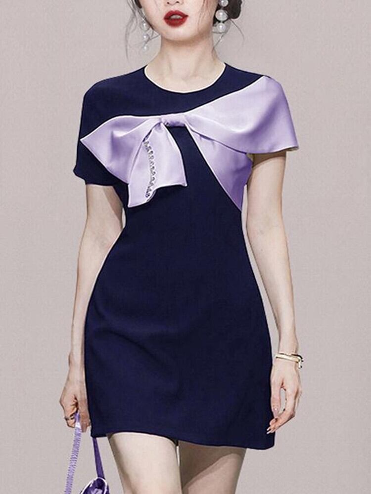 SMTHMA 女性パーティーウエディングドレスコントラストパッチワークビッグボウドレスサマーチューブボディコンイベントローブ リボン 夏物