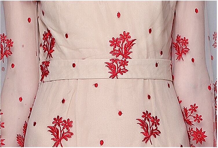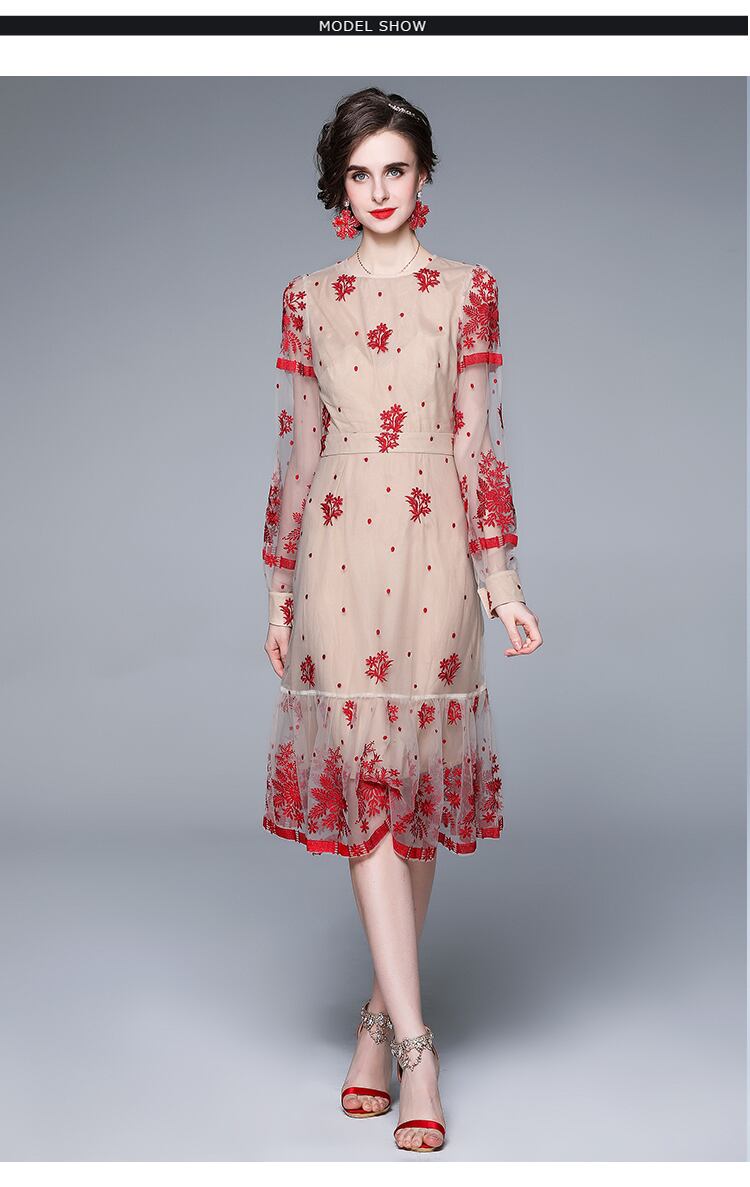 SMTHMA 滑走路サマードレス女性ランタンスリーブゴージャスな花刺繍メッシュパーティードレス 夏物 フラワーデザイン