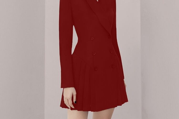 SMTHMA 春ダブルブレストプリーツドレス女性オフィスウェアドレス Vestidos スプリング 春物 会社 学校 通勤や通学にも