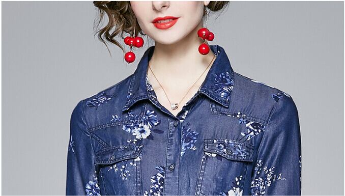 SMTHMA 女性秋の印刷デニムドレス滑走路パーティー Vestidos 送信ベルト オータム 秋物 ハーネス