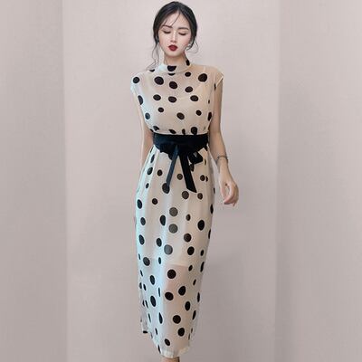 レディースポルカドットノースリーブドレスオフィスレディイブニングパーティーボディコンレースアップシースペンシルドレスワークVestidos 会社 学校 通勤や通学にも