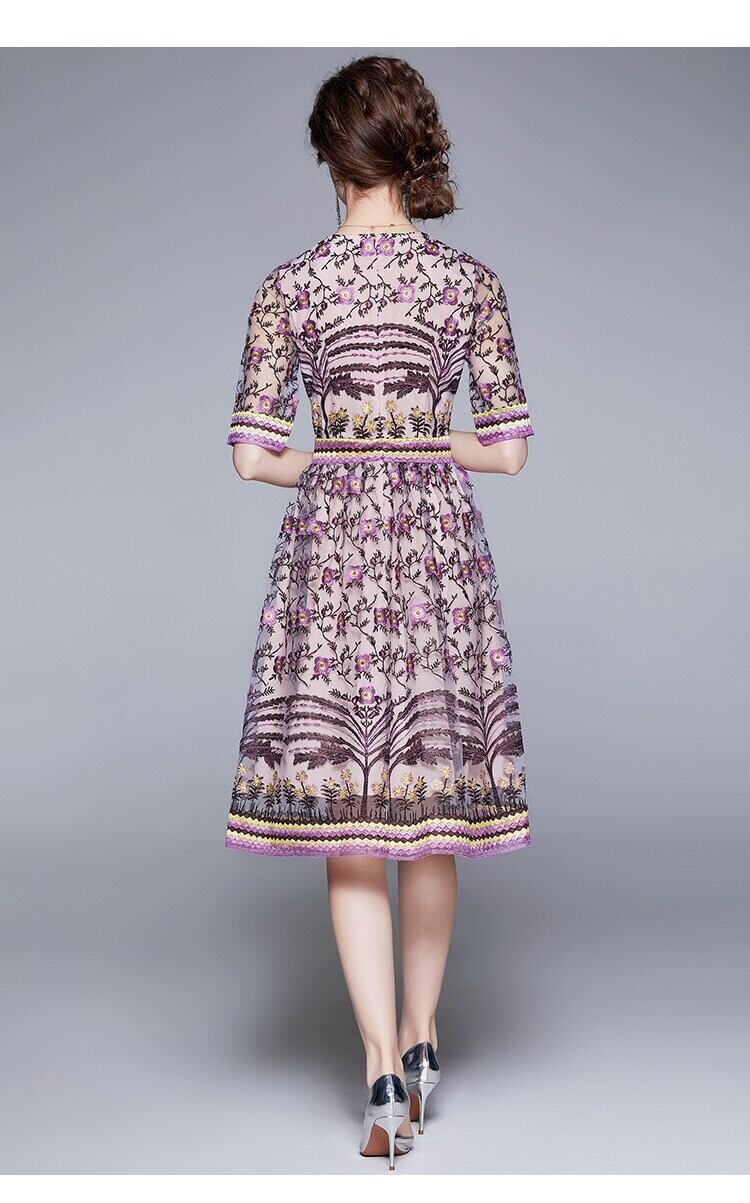 SMTHMA 滑走路パーティードレス女性レースメッシュ花刺繍サマードレス Vestidos 夏物 フラワーデザイン