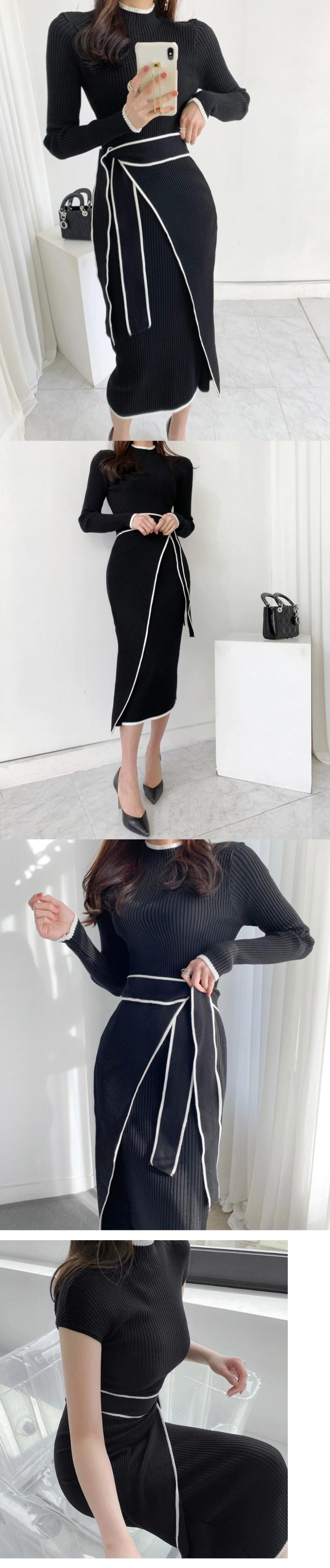 SMTHMA ハーフタートルネックニットドレス秋冬フルスリーブスキニーレースアップ女性セータードレス Vestidos オータム 秋物 ウィンター 冬物