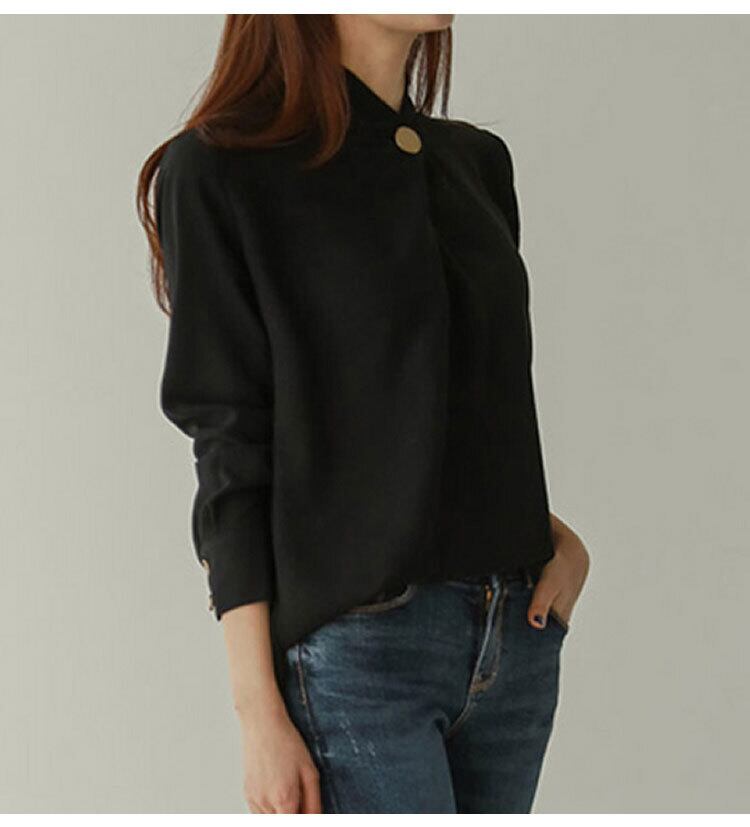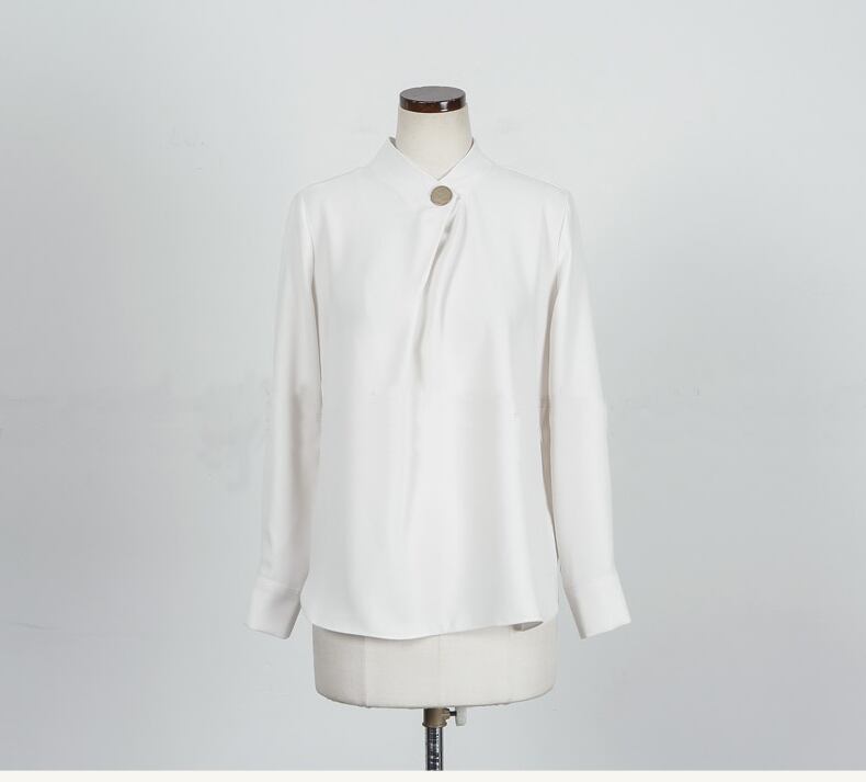 SMTHMA 女性春夏ブラウスシャツスタンドカラーボタンシフォンオフィスシックな女性トップス スプリング 春物 サマー 夏物 会社 学校 通勤や通学にも