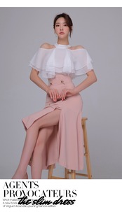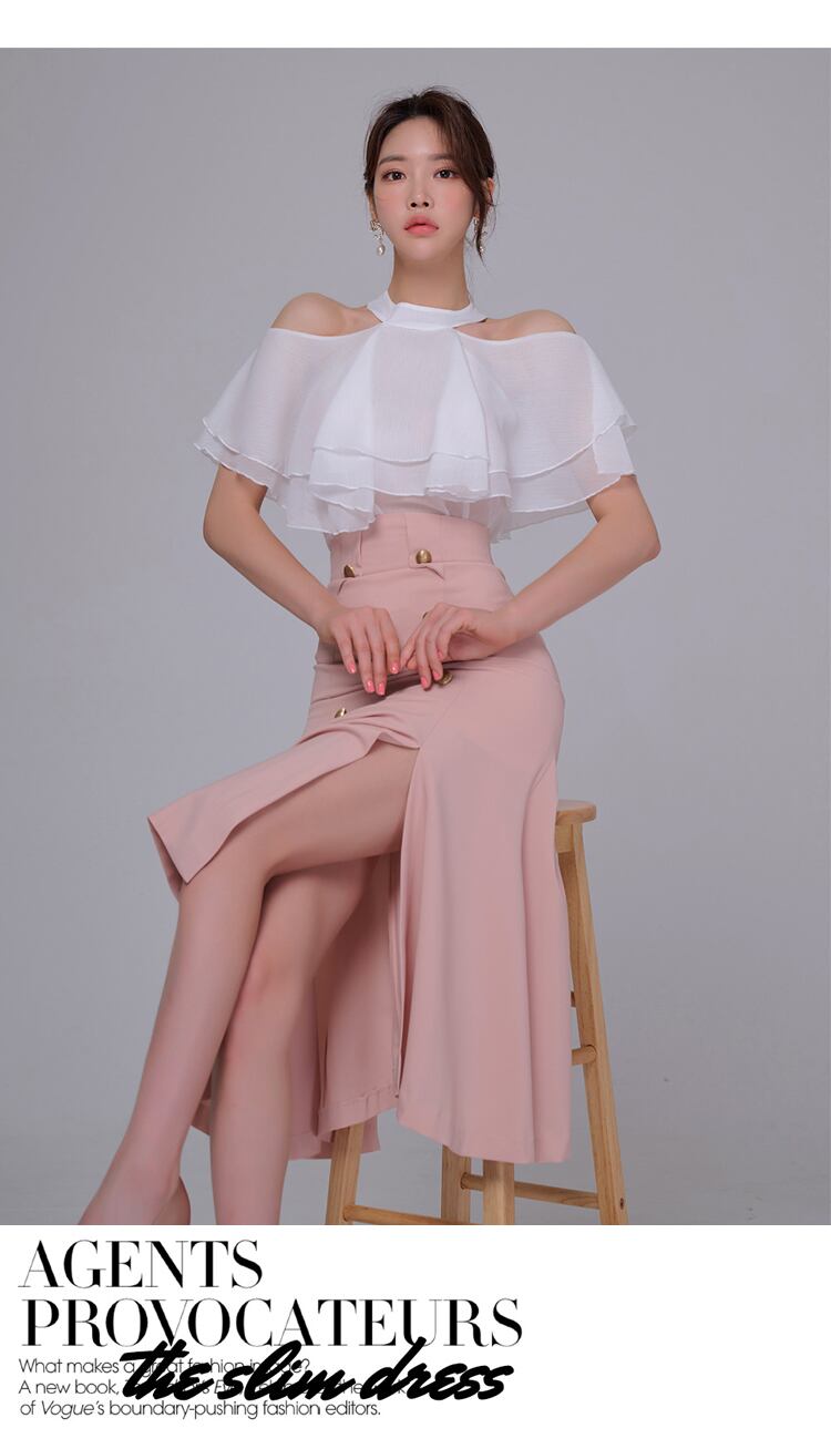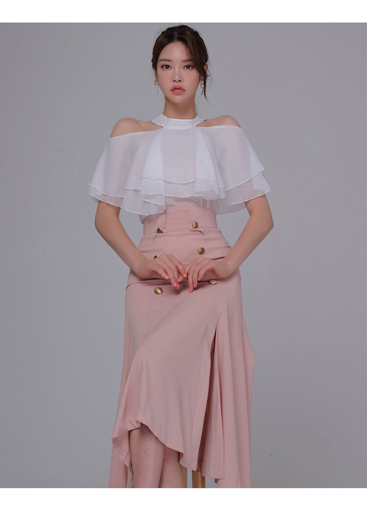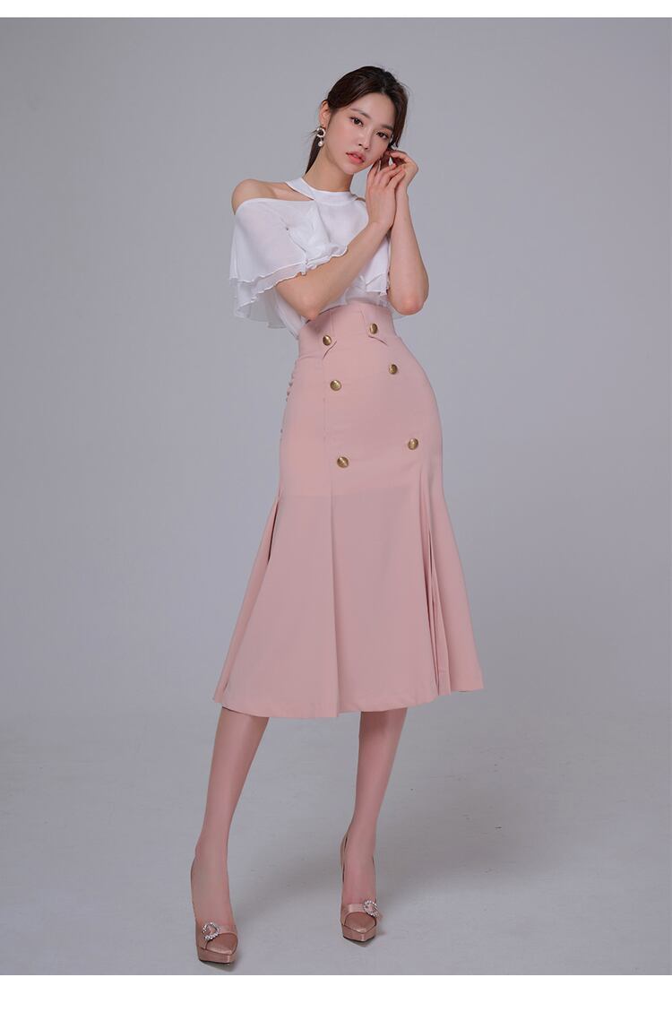 SMTHMA ツーピースセット女性気質シフォントップ + ウエストダブルブレストミディスカートスーツの服