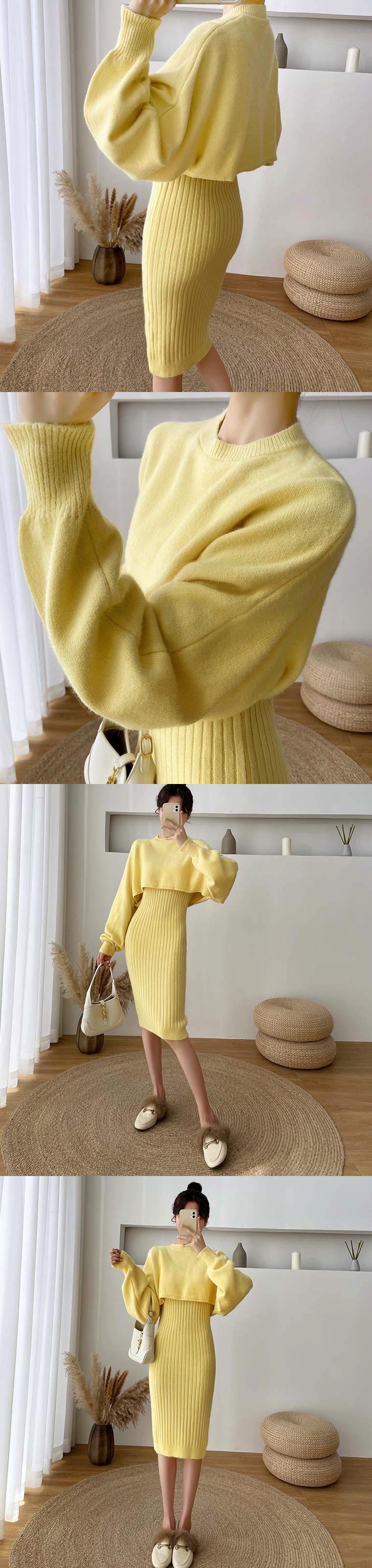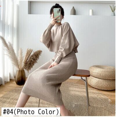 SMTHMA サスペンダードレススーツ 秋冬 バットスリーブ ルーズニットセーター ツーピースセット オータム 秋物 ウィンター 冬物