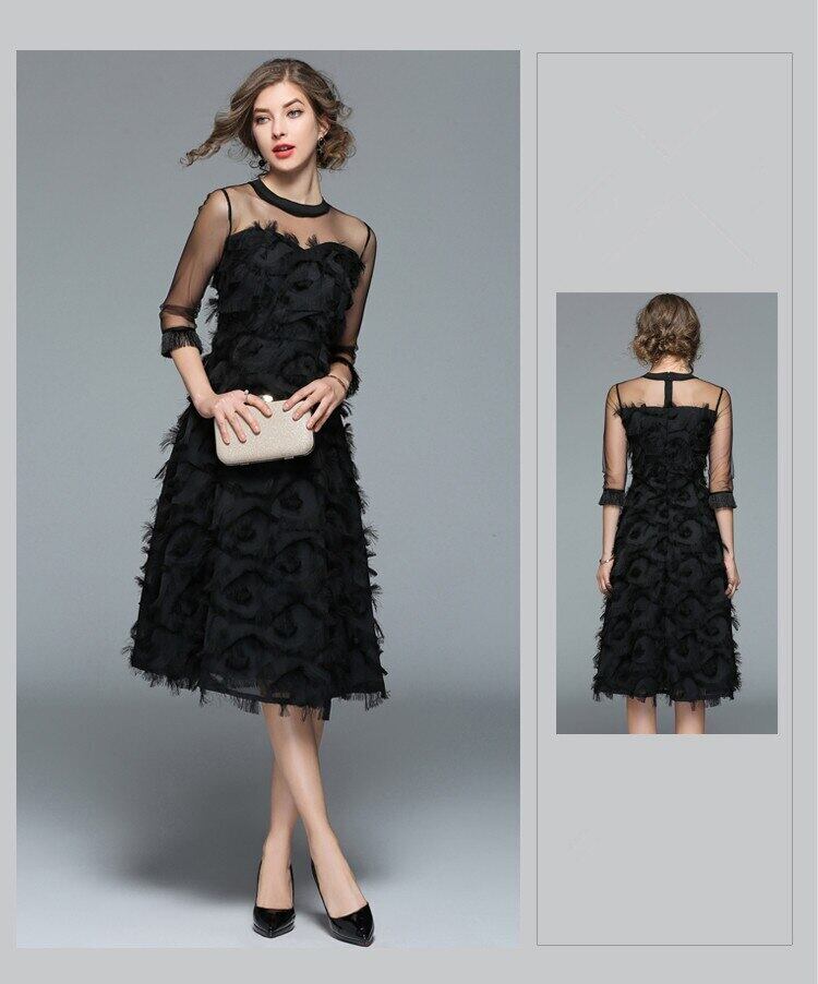 SMTHMA レディース ラウンド カラー サマー ドレス ブラック フェザー Tel メッシュ パッチワーク ドレス Vestidos 夏物