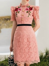 SMTHMA ラグジュアリー ランウェイ - エンド サマー ドレス ピンク レース ホロウ アウト エンブロイダリー フラワー ドレス Vestidos 刺繍 夏物 フラワーデザイン