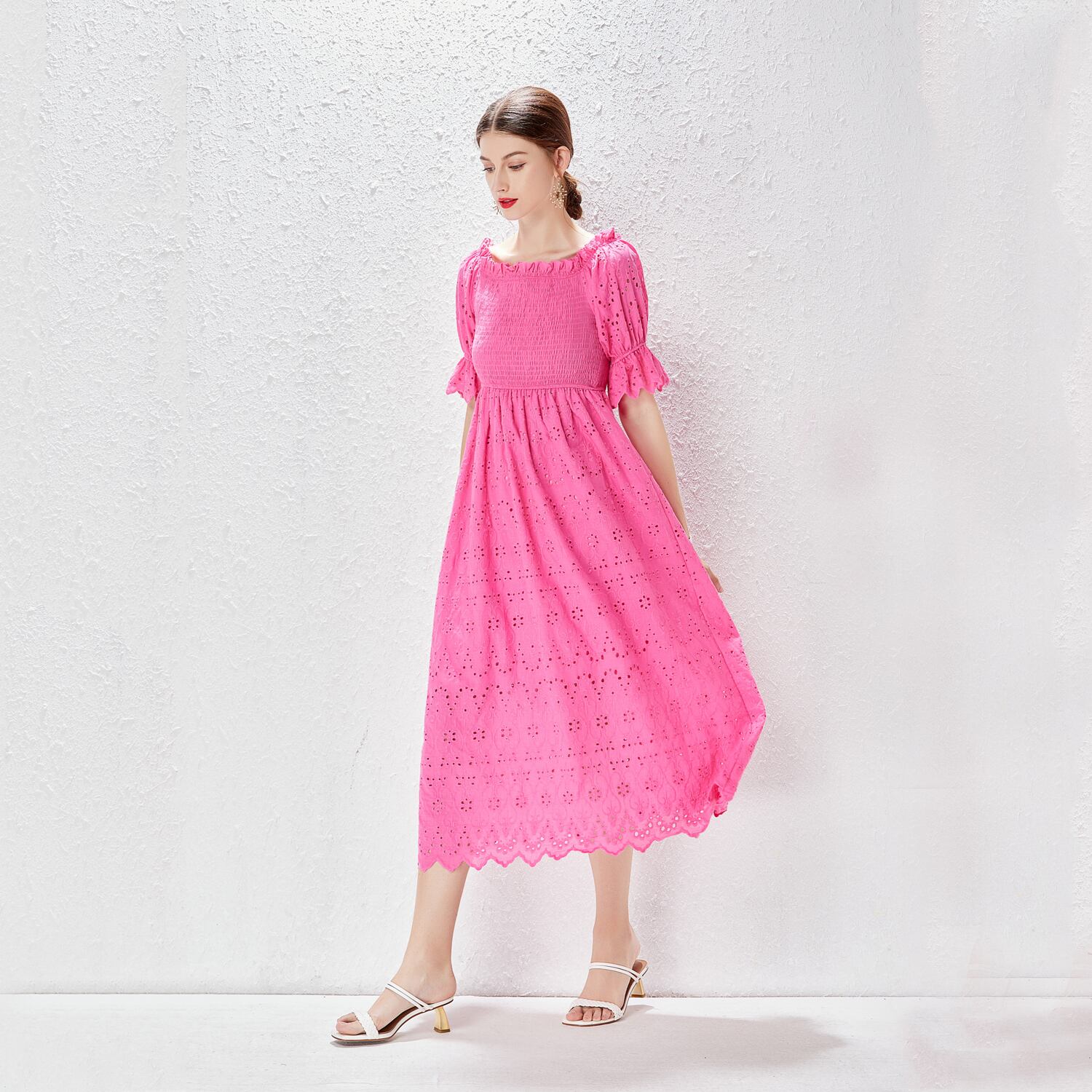 SMTHMA ランウェイ レース ホローアウト ドレス セクシー オフショルダー 刺繍 ロング パーティードレス