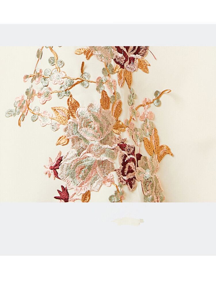 SMTHMA 春の滑走路 V ネック レースアップ パーティー ドレス女性の半袖刺繍花ドレス ハーフスリーブ スプリング 春物 Vネック フラワーデザイン