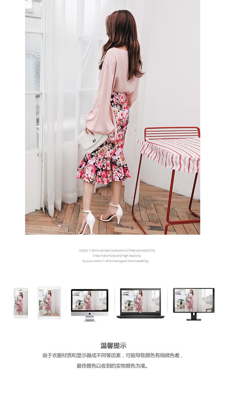 SMTHMA est 春スタイル レディース ルーズ ランタン スリーブ トップス + プリント マーメイド ツーピース スカート セット ランタンスリーブ スプリング 春物