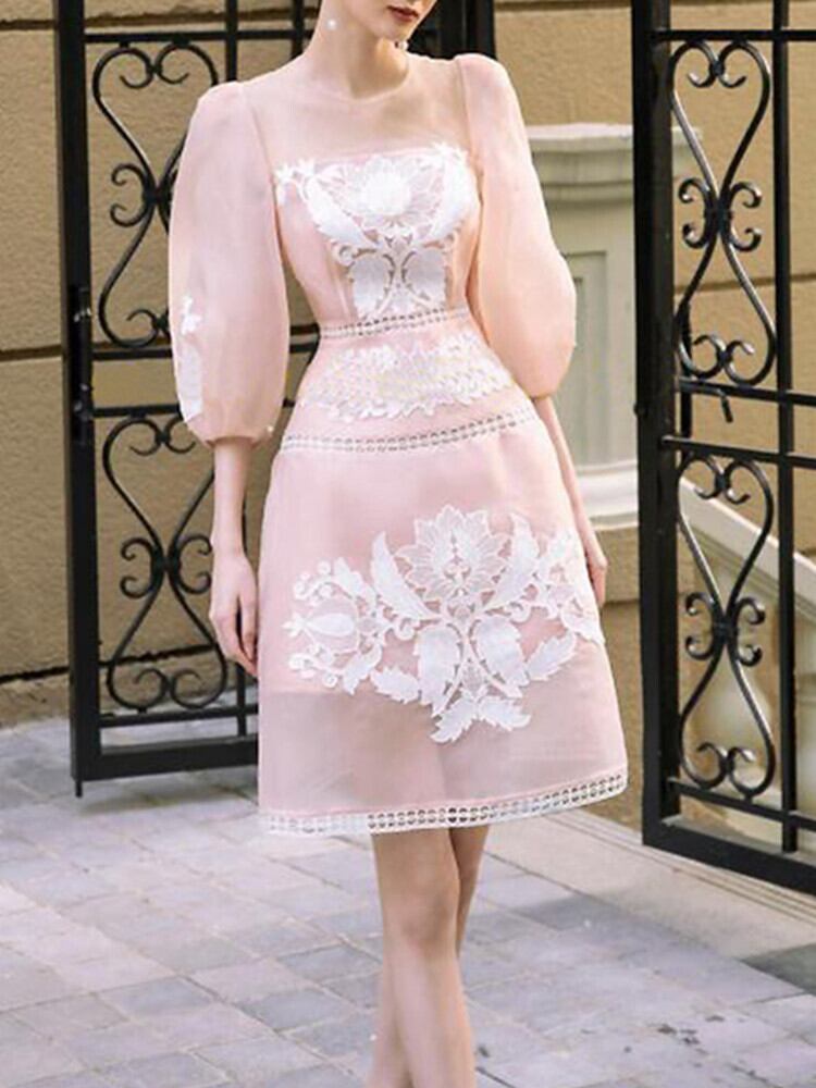 SMTHMA 女性ピンク刺繍レースサマードレス Vestidos 滑走路気質フレンチパーティードレス レッド 夏物