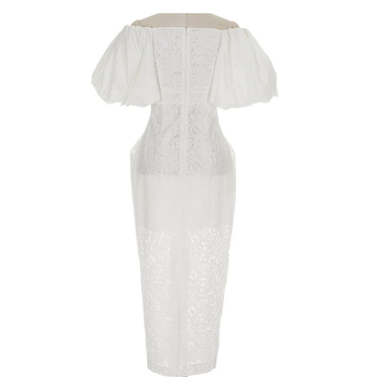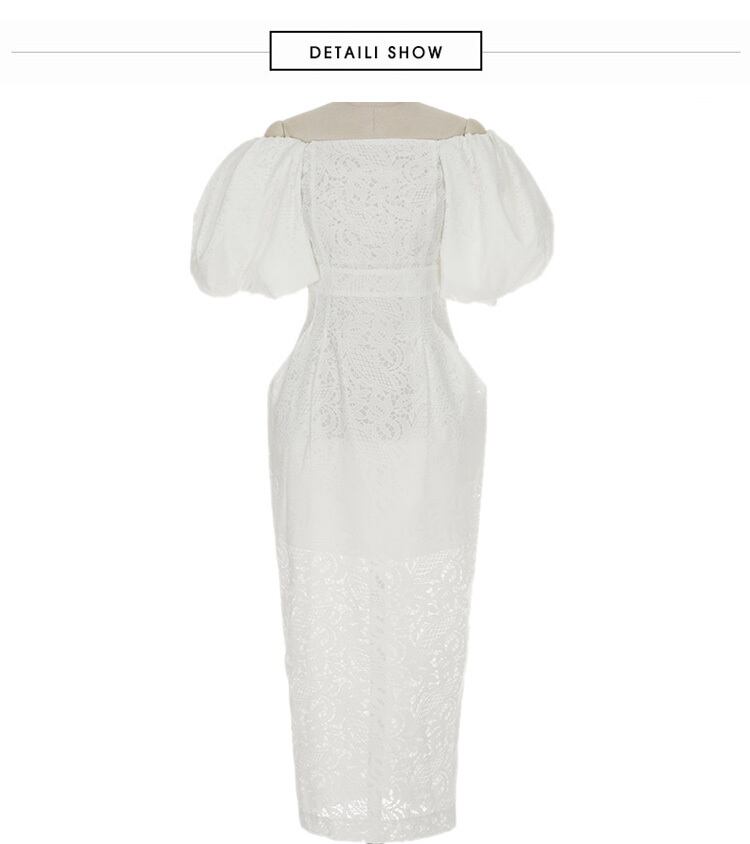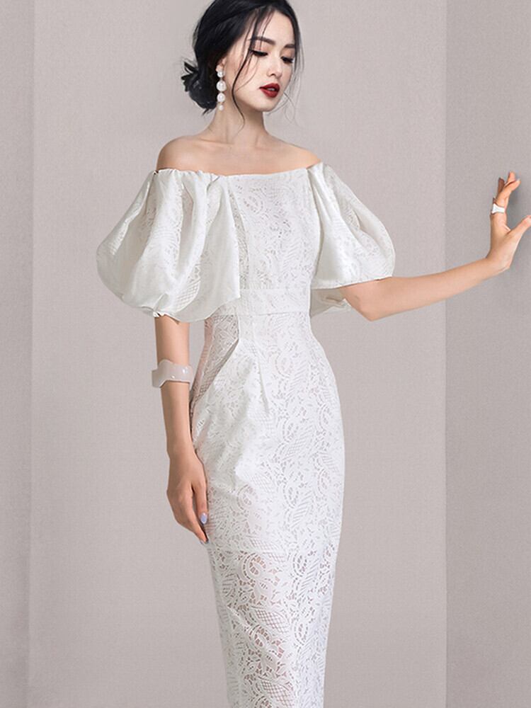 SMTHMA セクシーなオフショルダーランタンスリーブサマードレス女性レース中空アウトロングドレス Vestidos 夏物