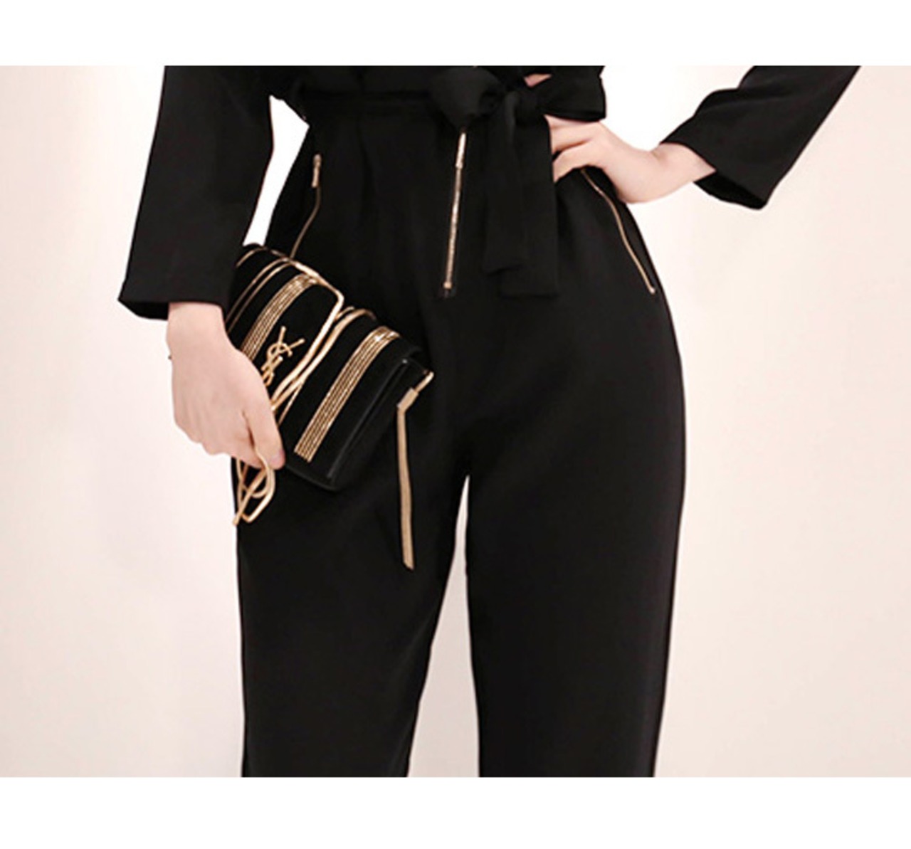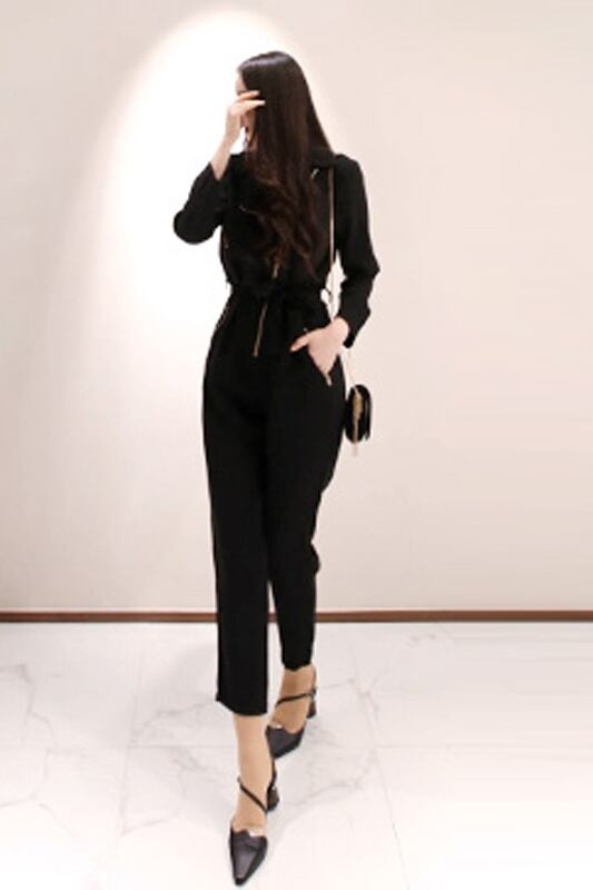 SMTHMA 入荷 ブラック ジャンプスーツ ノッチドカラー ハイウエスト ルーズ カジュアル レトロ ファッション ジャンプスーツ ハイウェスト