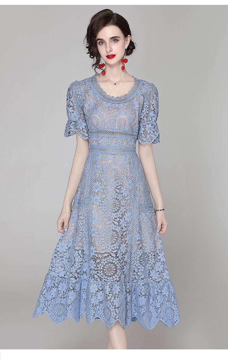 SMTHMA レース中空アウト サマー ドレス女性 O ネック半袖ウエスト ドレス ショート ハーフスリーブ 夏物 Oネック