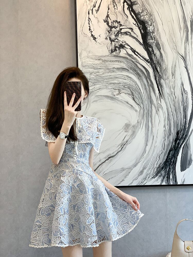SMTHMA 滑走路中空アウト レース ネック パッチワーク ドレス女性の夏のシックなガール ドレス Vestidos サマー 夏物
