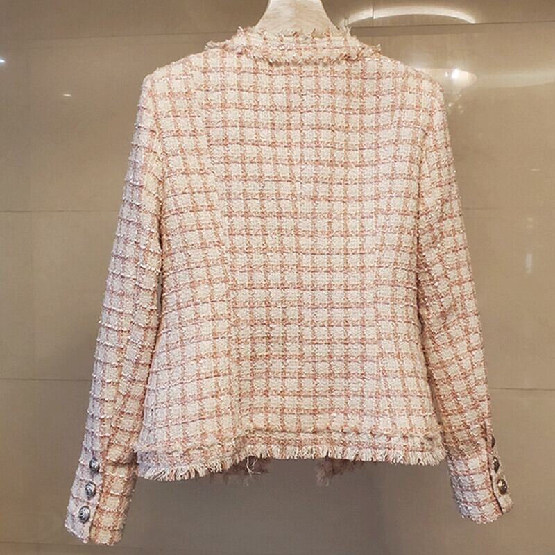 SMTHMA 秋冬電話チェック柄ツイードウールジャケット女性 O ネックダブルボタンオフィス生き抜く オータム 秋物 ウィンター 冬物 Oネック 会社 学校 通勤や通学にも