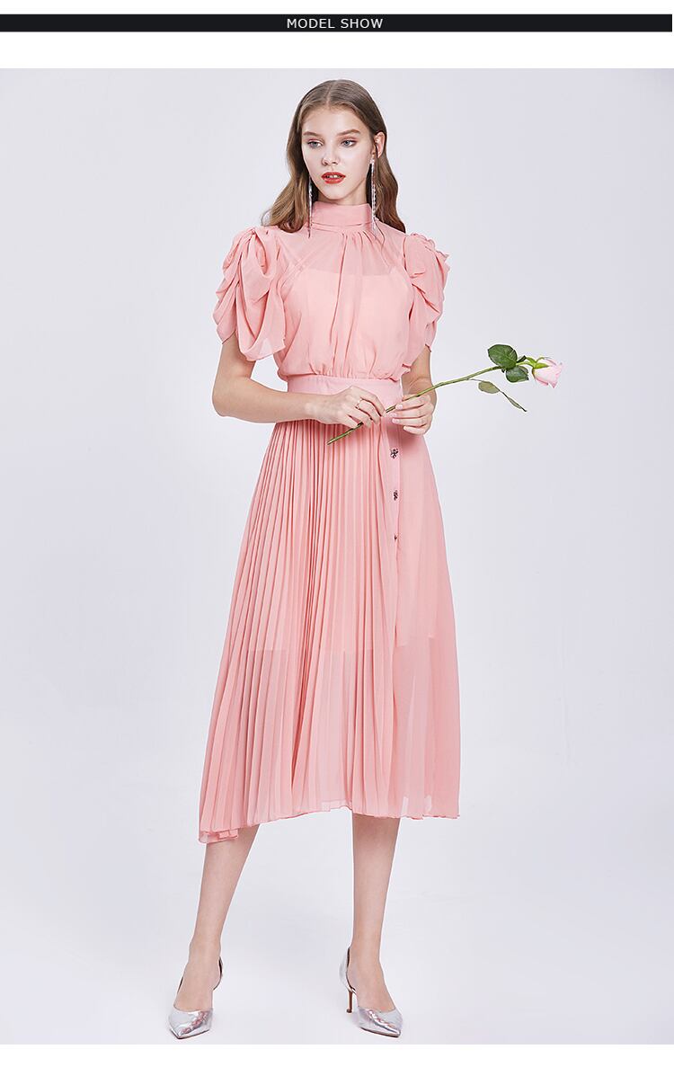 女性の夏のシフォン ドレス オフィス シングルブレスト パーティー ドレス弓滑走路ドレス Vestidos リボン サマー 夏物 会社 学校 通勤や通学にも