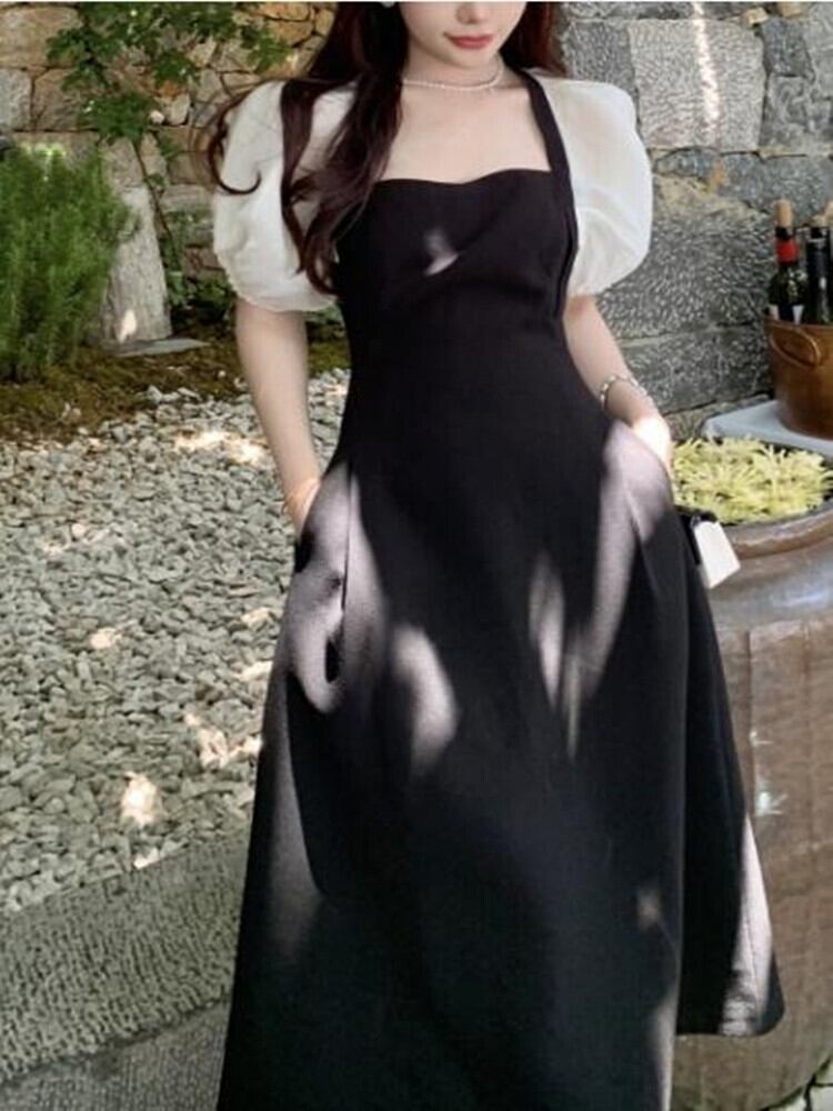 SMTHMA 女性サマースクエアネックウエストボディコンドレスパフスリーブ女性ドレス 夏物 スクウェア