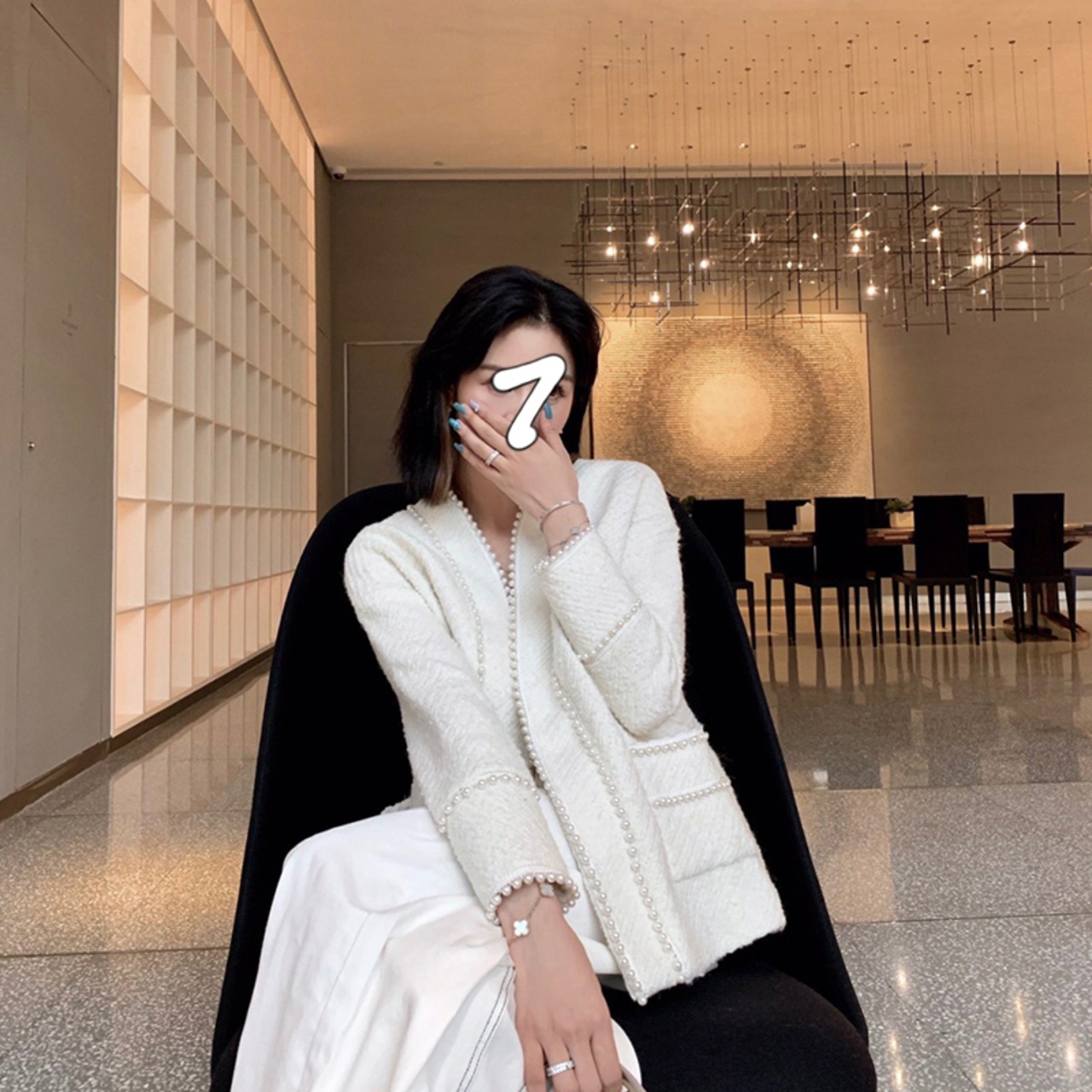 SMTHMA ホワイト ツイード レディース ビーズ ジャケット 秋/冬 ウール コート ルーズ ウール クリック チャケタス デ オータム 秋物 ウィンター 冬物