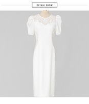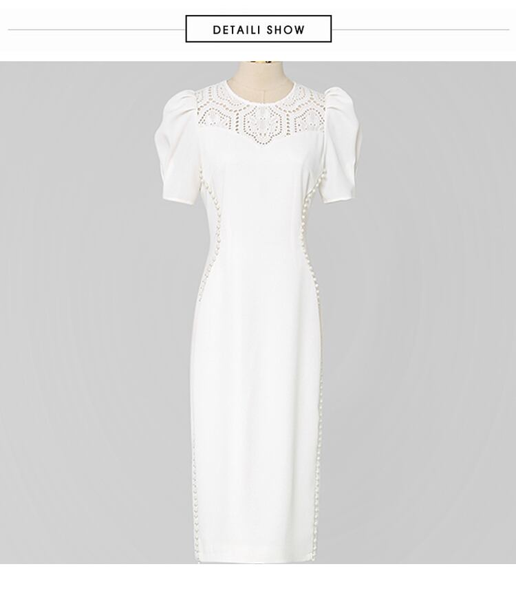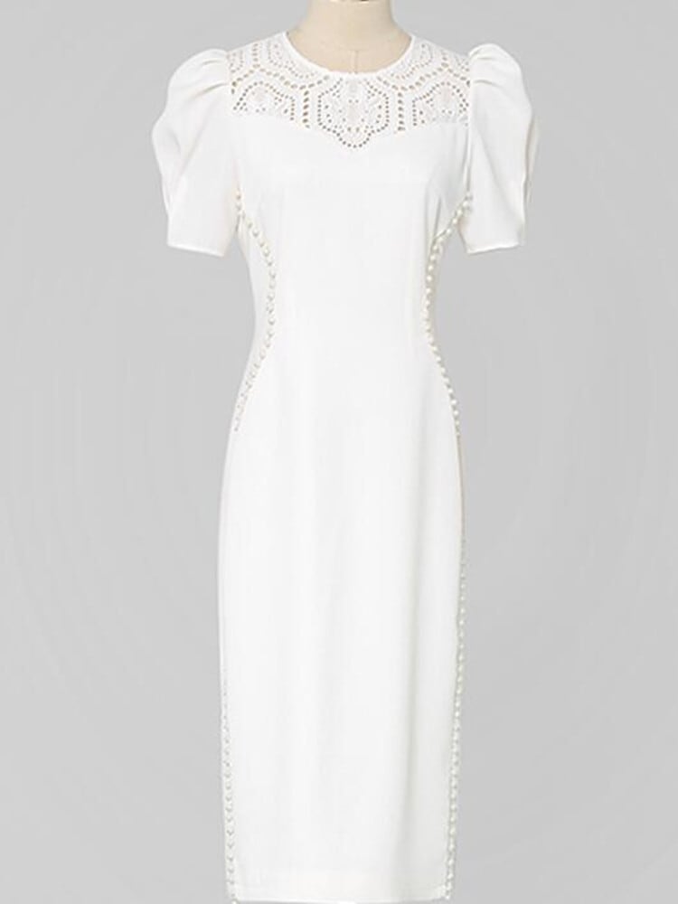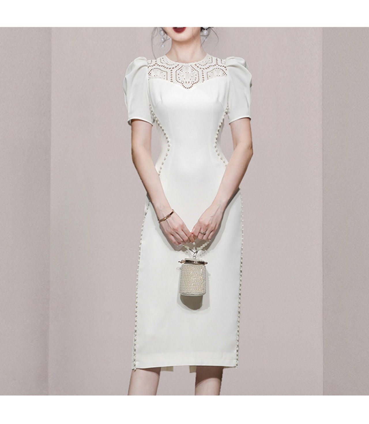 SMTHMA Vestido De Chic レディース サマー レース パッチワーク スウィート パフ 半袖 ビーズドレス ショート ハーフスリーブ 大人ガーリー キュート カジュアル 夏物 | two