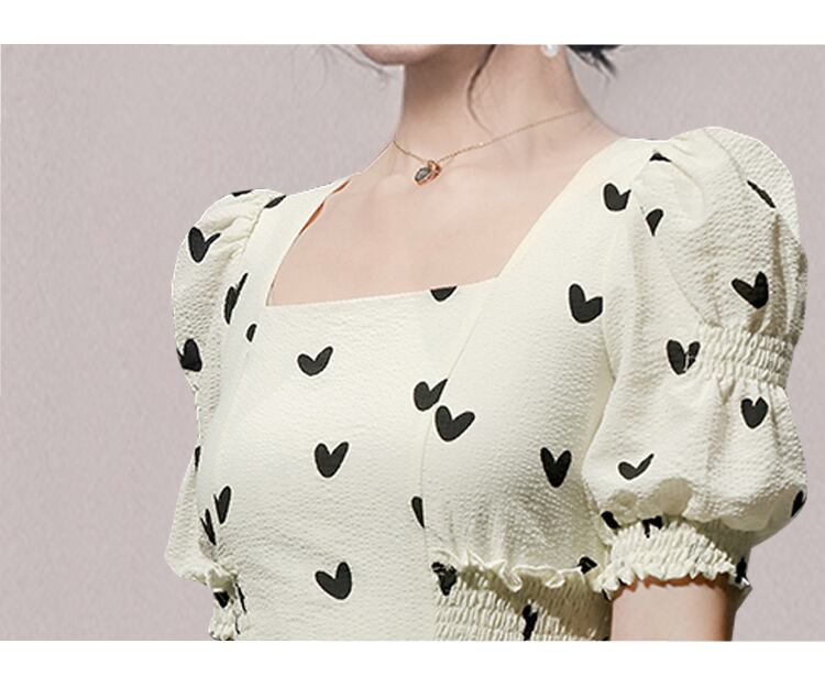 SMTHMA サマーパフスリーブパーティードレス ストリートウェア ローブ スクエアネック プリント ビーチドレス 夏物 スクウェア