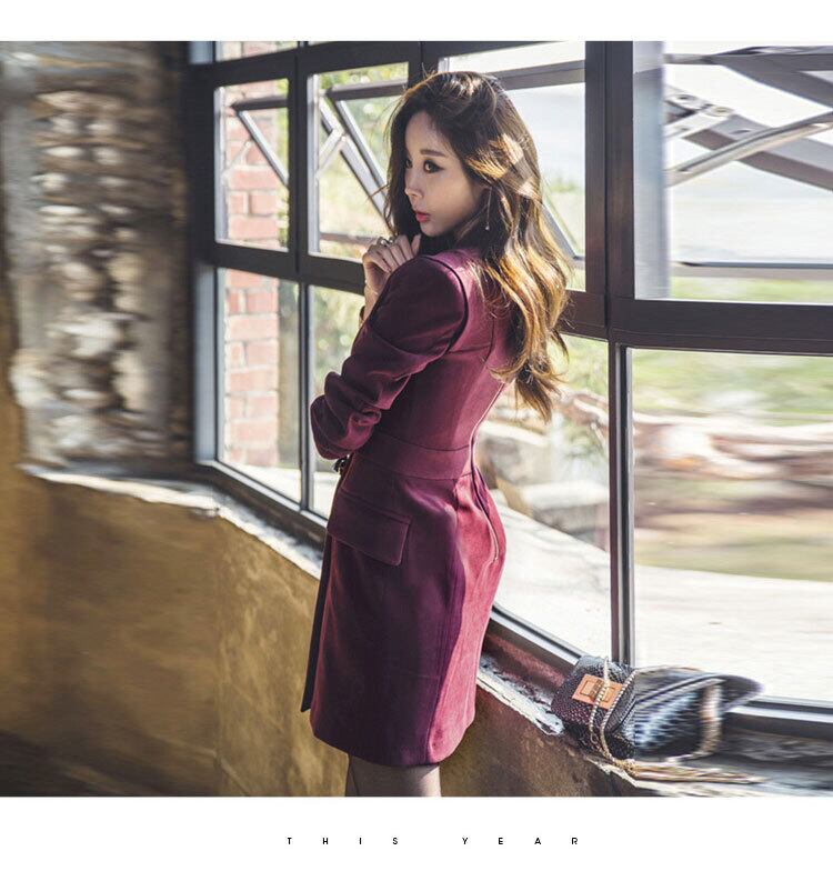 SMTHMA 高品質春ランウェイドレス長袖スリム OL 気質レディースダブルブレストエレガンスオフィスドレス ロング スプリング 春物 会社 学校 通勤や通学にも