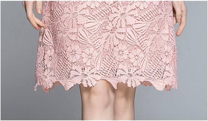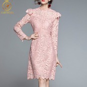 SMTHMA ランウェイ 春 ピンク レース ドレス レディース スタンドカラー 長袖 中空アウト パーティー Vestidos ロング スプリング 春物