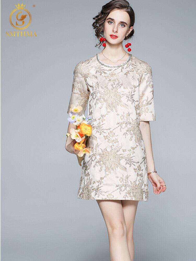 SMTHMA 滑走路夏ジャカードドレス女性半袖高級ビーズパーティーミニドレス Vestidos ショート ハーフスリーブ サマー 夏物
