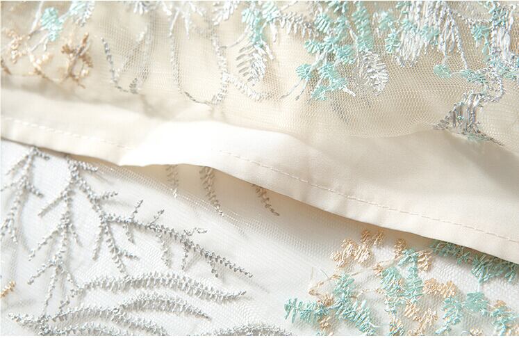 SMTHMA 夏パーティードレスの半袖メッシュ花刺繍膝丈ドレス Vestidos ハーフスリーブ サマー 夏物 フラワーデザイン