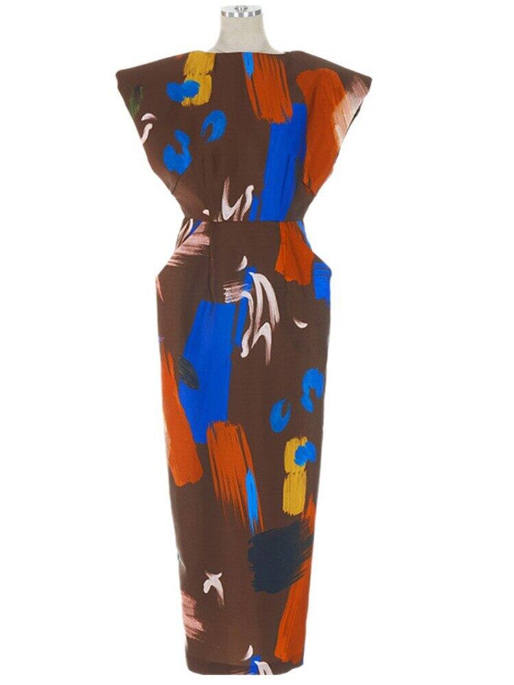 SMTHMA 夏スタイルスリムプリントドレスエンドノースリーブロングドレス サマー 夏物