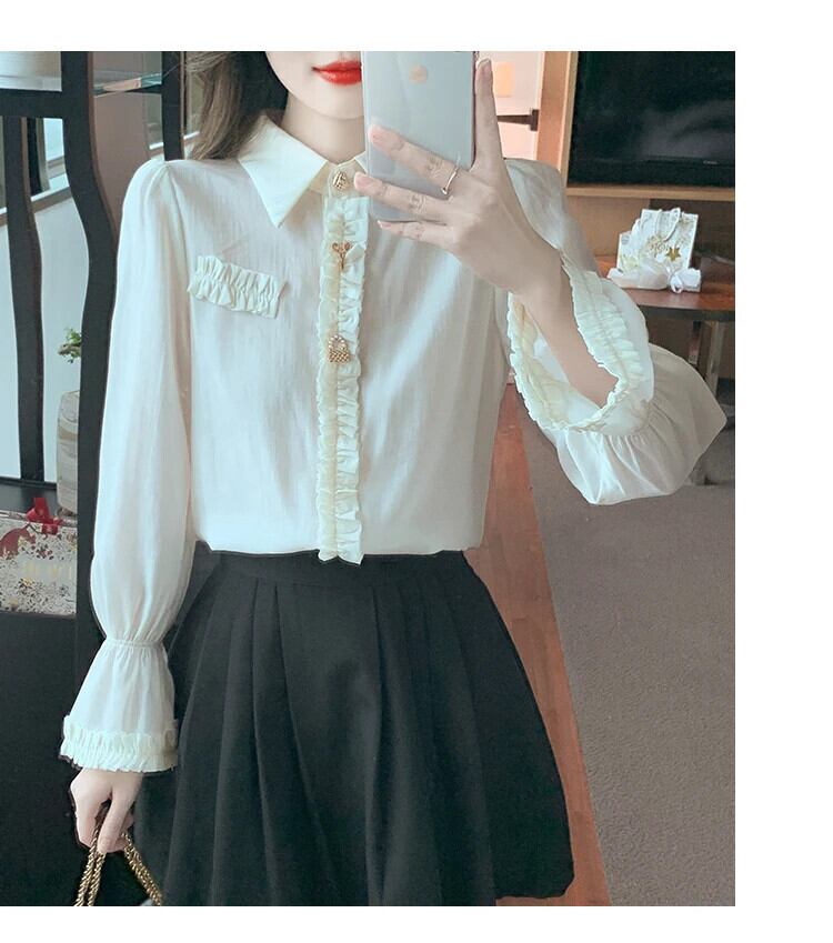秋ブラウスオフィスレディトップス甘いフリルブラウスブラウスフレア長袖春ブラウス ロング 大人ガーリー スウィート キュート カジュアル スプリング 春物 オータム 秋物 会社 学校 通勤や通学にも | two