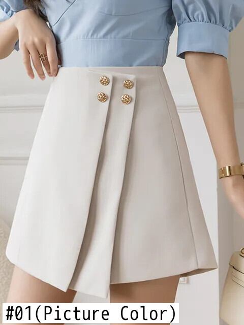 Smthma ストリート ブラック メタル ボタン ショーツ Vrouwen Hoge Taille Abrikoos Een Lijn Wijde Pijpen Pak Korte Nieuwe Kleding ブルマー | two