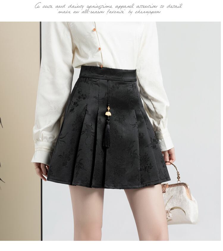 Smthma Frauen Kleidung chinesischen Stil Jacquard kurzen Rock neue hohe Taille dünne Falten Rock A-Linie Röcke Faldas | two