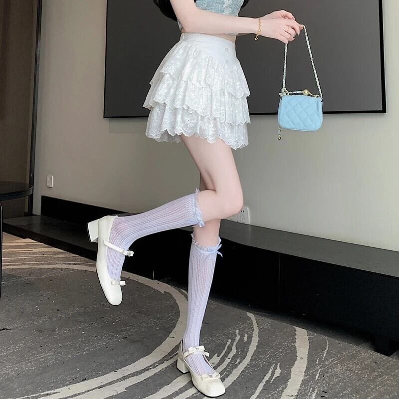 Super unsterbliche süße Spitze bestickt Hohlrock Sommer hohe Taille abnehmen Anti-Licht-Kuchen kurzen Rock für Frauen Kleidung | two